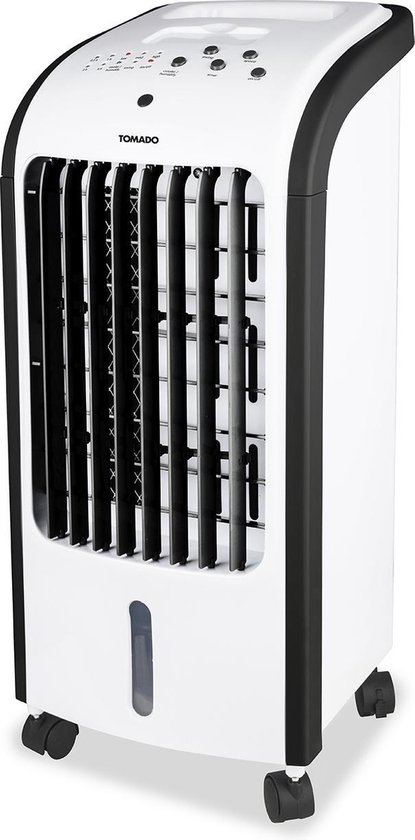 Op zoek naar extra verkoeling deze zomer? De multifunctionele mobiele luchtkoeler TAC4001W 3-in-1 luchtkoeler, ventilator en bevochtigervan Tomado zorgt voor een aangename temperatuur in huis. De luchtkoeler heeft 3 snelheden en een optimale luchtverplaatsing door de horizontale swingfunctie. Het uitneembare waterreservoir heeft een inhoud van 4 liter en voor extra verkoeling worden er ook 2 koelelementen meegeleverd. Met de handige afstandsbediening en instelbare timer zet je de luchtkoeler aan en er is geen omkijken meer naar. Daarna kun je heerlijk genieten van koele lucht! Liever ventileren of bevochtigen? Ook dat is mogelijk met de luchtkoeler van Tomado.