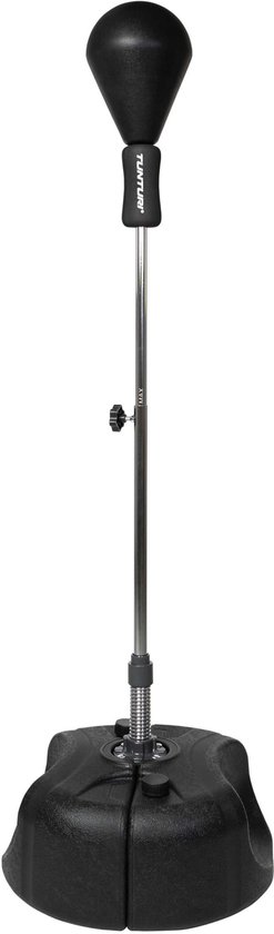 Door de voet te vullen met zand blijft de speedball altijd stevig op zijn plek staan, hoe hard je er ook tegen stoot of schopt. De bal zelf is gemaakt van PolyUrethaan (PU), een goed en sterk alternatief voor leer. De stalen stang is in hoogte aanpasbaar, zodat je altijd op de goede hoogte traint.